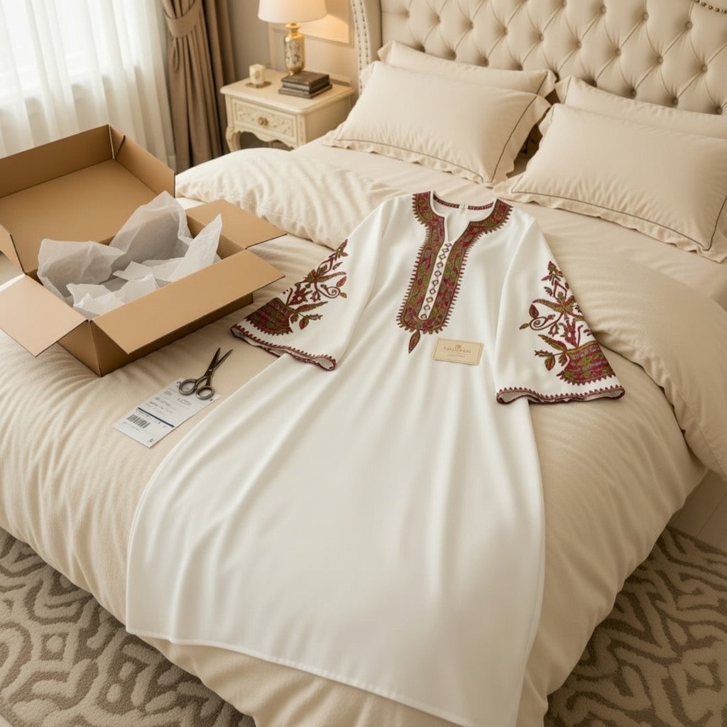 Cette abaya aux motifs élégants se distingue par sa coupe fluide et raffinée qui apporte légèreté et grâce à votre silhouette. Conçue pour allier confort et style, elle offre une allure sophistiquée idéale pour le quotidien comme pour les occasions spéciales. Ses détails délicats et sa coupe harmonieuse en font une pièce à la fois moderne et intemporelle.